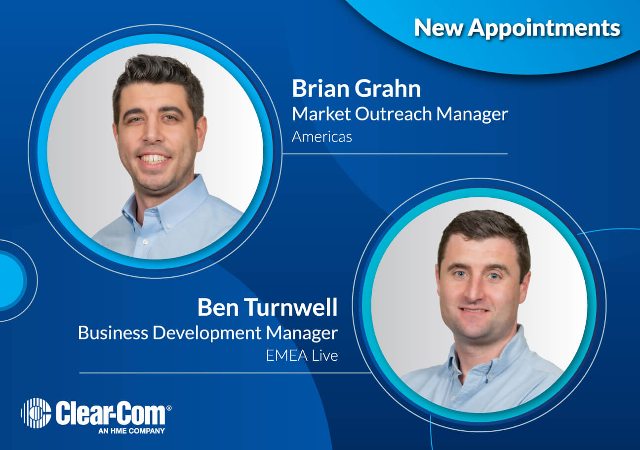Clear-Com® has appointed Brian Grahn as Market Outreach Manager of the Americas and Ben Turnwell as Business Development Manager for EMEA live, expanding their roles as the company continues to strengthen customer engagement across global markets.