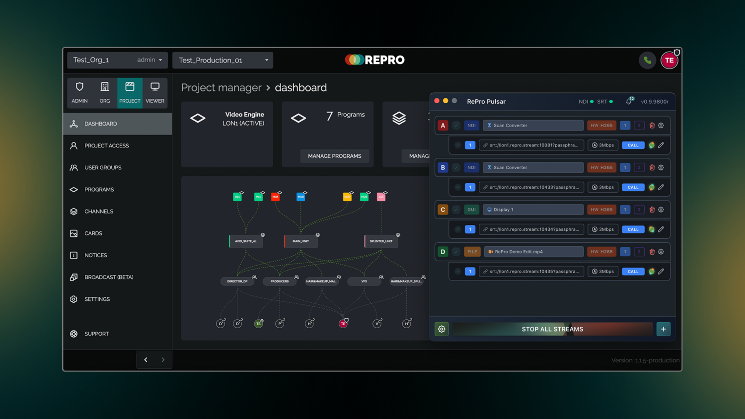 Designed to serve multiple departments, from on-set video teams to editorial, Pulsar runs on Mac and Windows, with Linux coming soon. Included with a RePro subscription, Pulsar allows crews to stream up to four live video feeds from a single machine into the RePro platform without dedicated encoding hardware.